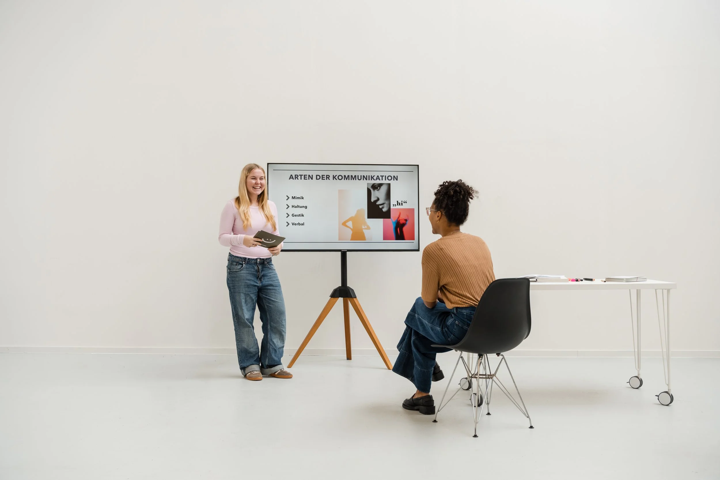 Während dem Präsentations-Coaching sind keine Begleitpersonen erlaubt. Sie können jedoch im Eingangsbereich vom bizzcenter warten.